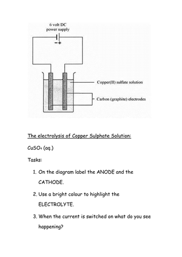 The Electrolysis Of Copper Sulfate Practical Task Worksheet Tpt